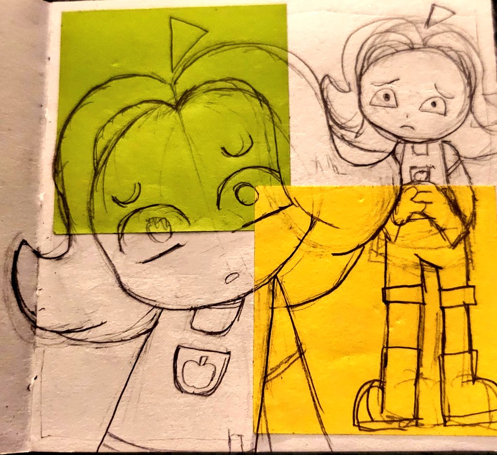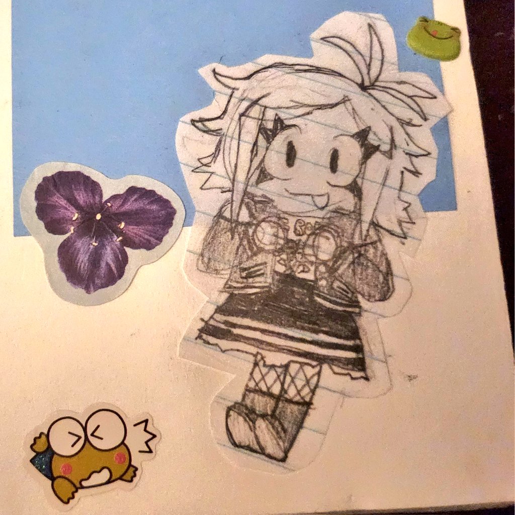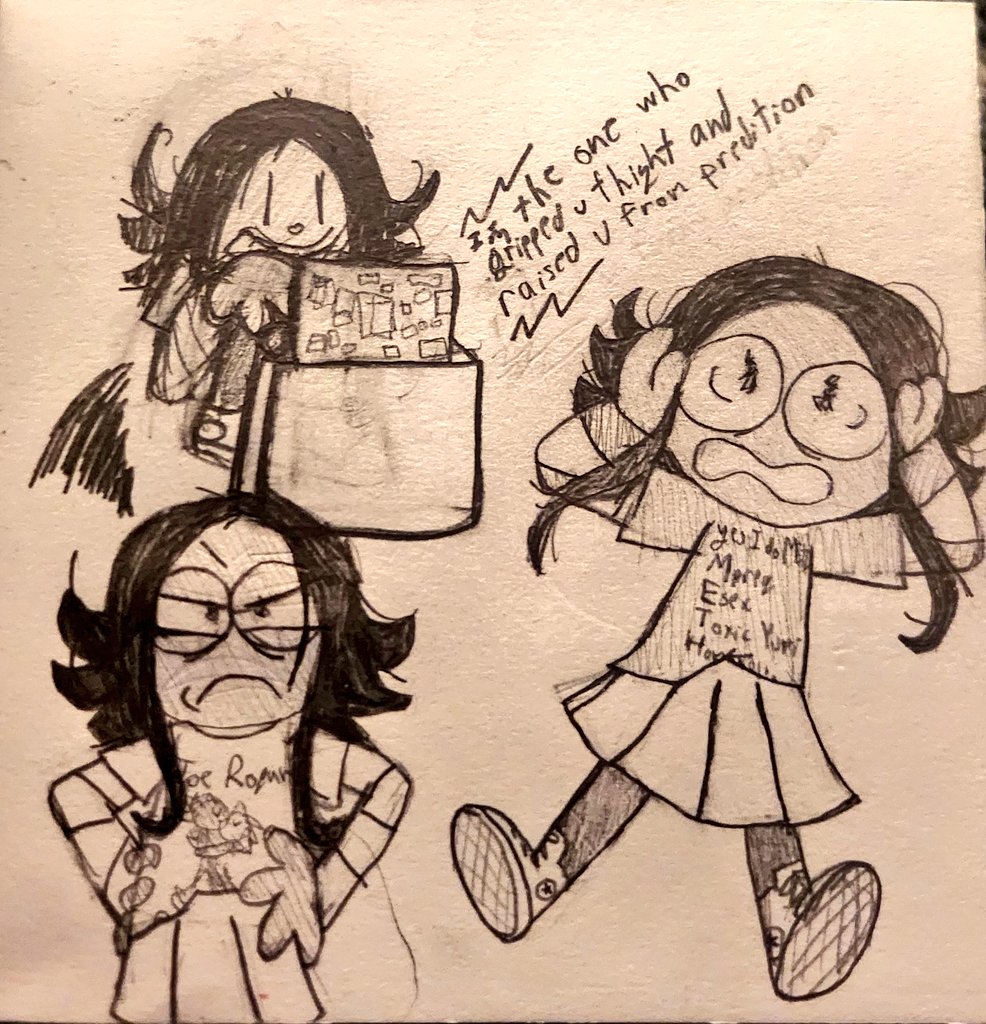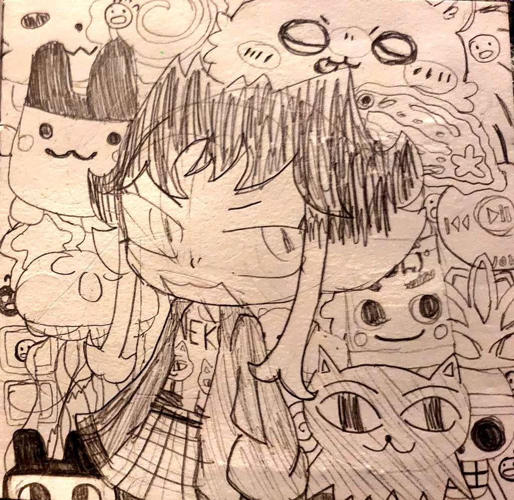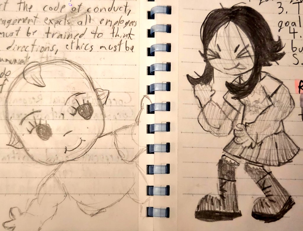 My oc with lil doodles in the back